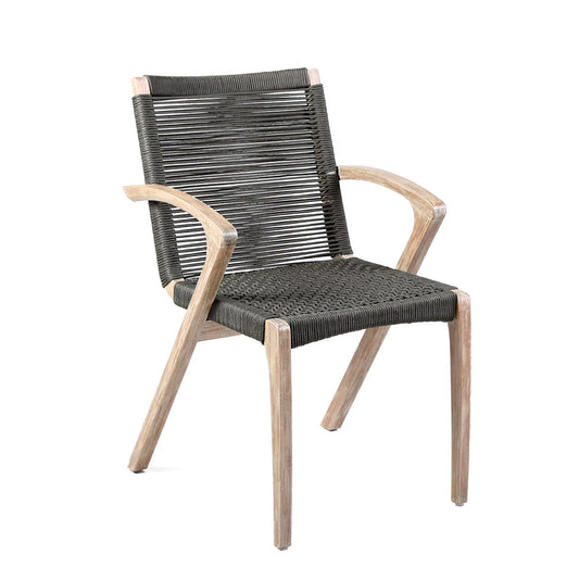Birelle Outdoor Dining Chair in Light Eucalyptus Wood and Charcoal Rope - Set of 2