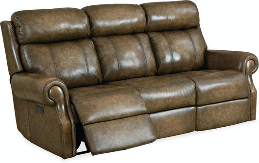 Hooker Furniture Living Room Braeburn Leather Sofa w/PWR Recline PWR Headrest