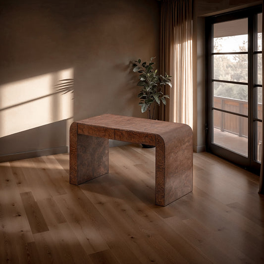 Dovetail Upholstered Coffee Table - Ivanhoe Toast, Burnished Brown Acacia