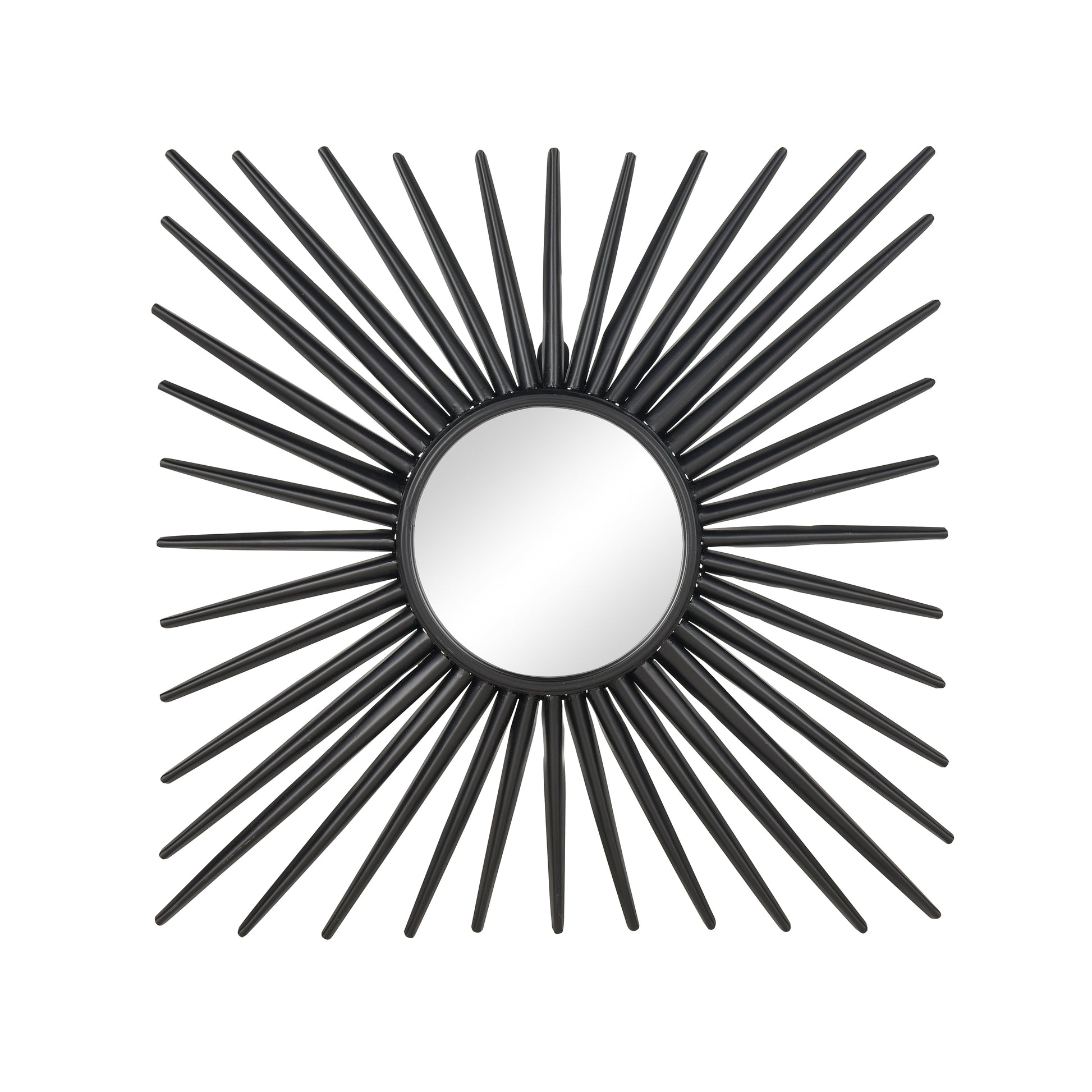 Black painted metal "rays" emit from the central mirror and form a square frame. Group in multiples for maximum visual impact.