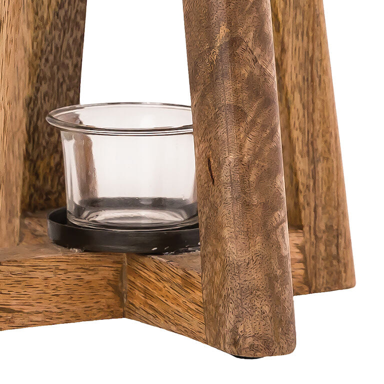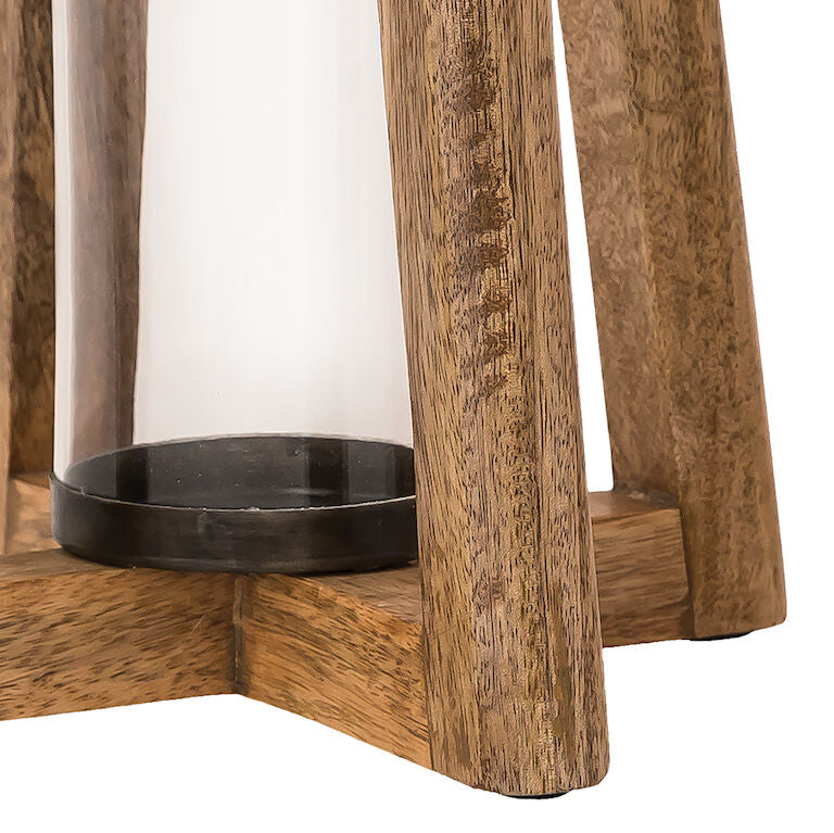 The Carmel Lanterns, sold as a set of 2, are two rectangular wooden lanterns, one larger and one smaller
