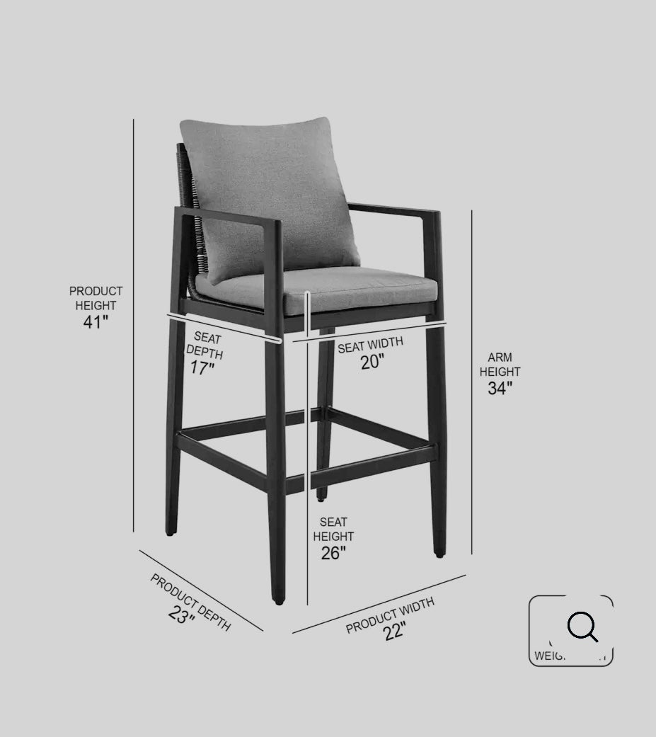 Featuring a minimal and sleek design, this outdoor patio bar stool brings effortless style to your backyard, patio, pool area, garden, or screened-in porch. Rattan is intricately woven around the back of the seat to serve as a unique and elegant detail and featuring ergonomic properties to keep your back properly aligned.