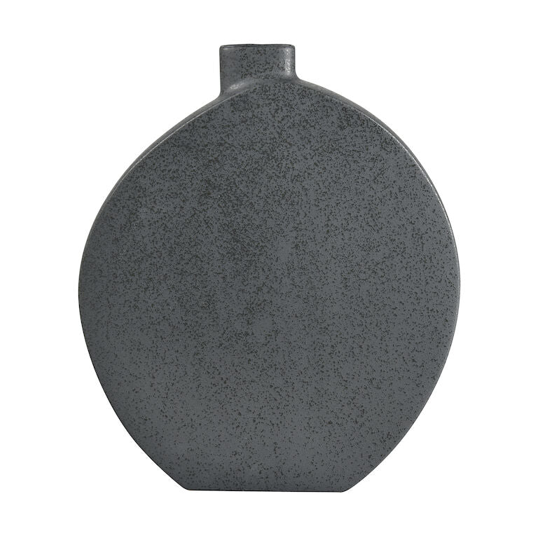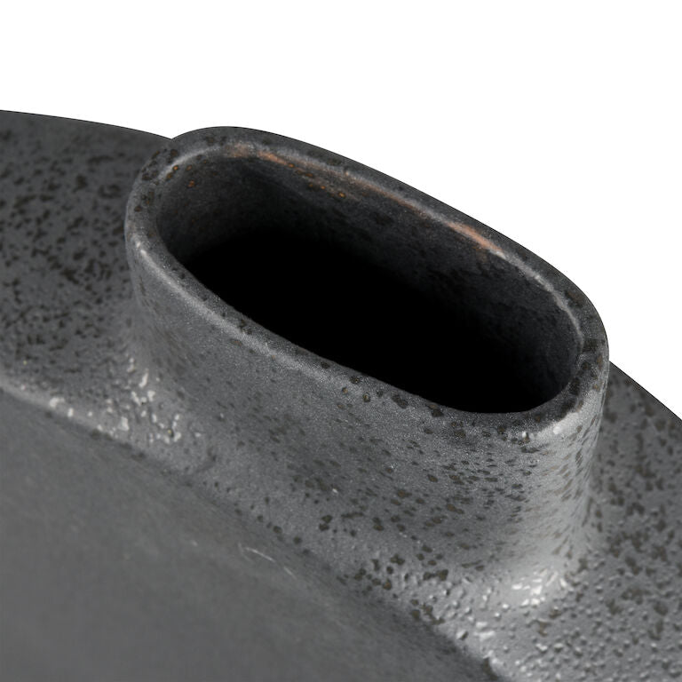 The Damen vase is a round earthenware vase in a matte black speckled glaze finish