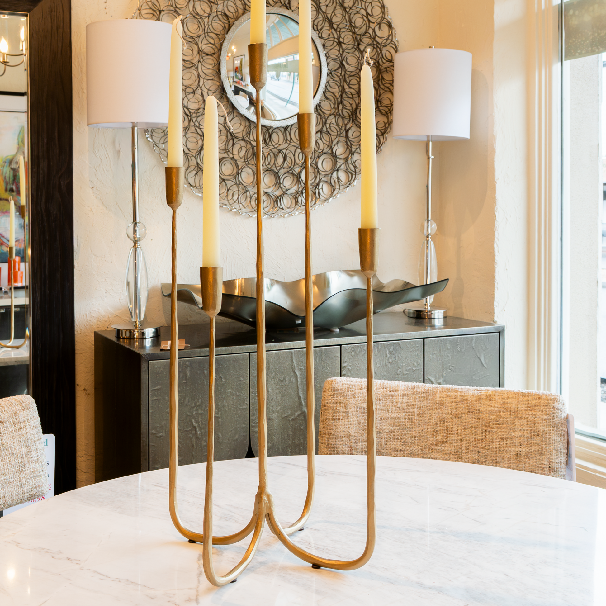 Add a touch of industrial elegance to your space with these forged iron candelabras. Its sturdy, hand-finished design brings timeless sophistication to dining tables, mantels, or entryway displays. Durable, versatile, and effortlessly chic—these candelabras are a must-have centerpiece for both everyday and special occasions.
