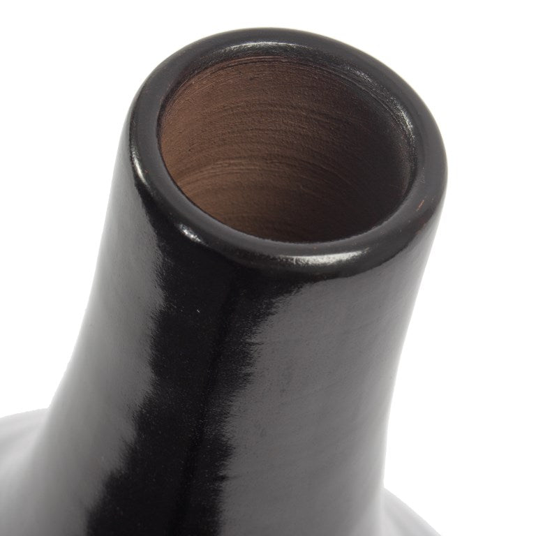 This handmade vase features a polished smoky black finish, and pairs perfectly with other similar pieces.