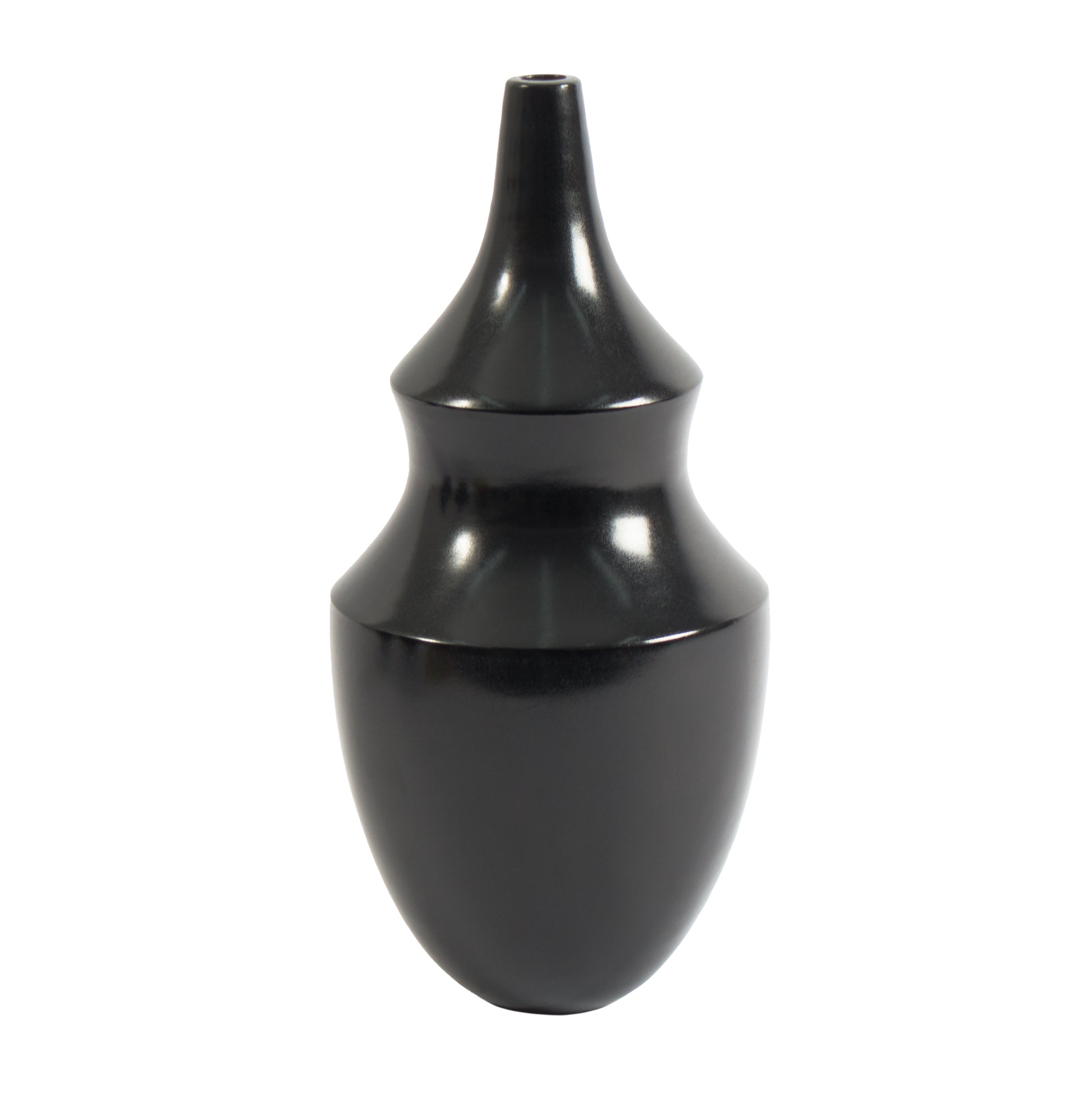This handmade vase features a polished smoky black finish, and pairs perfectly with other similar pieces.