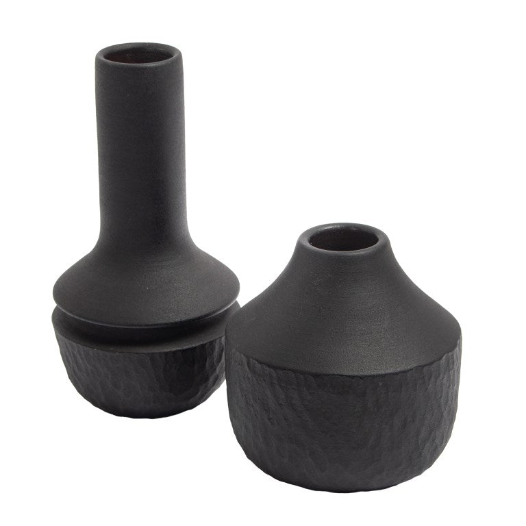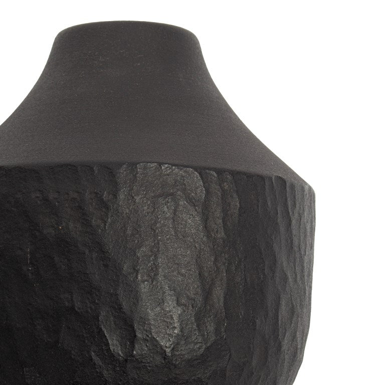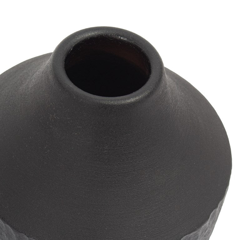 This handmade vase features a matte black finish with a textured lower half, and pairs perfectly with other similar pieces.